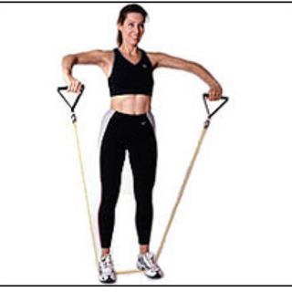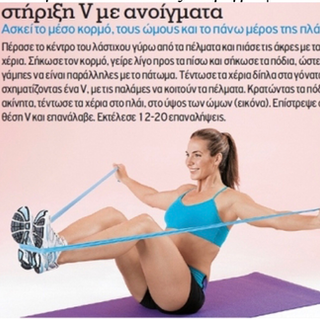 Εκτέλεση: Περάστε το λάστιχο κάτω από τα πόδια σας όπως φαίνεται στην παραπανω φωτογραφία. Κρατώντας τους αγκώνες κολλημένους στα πλευρά και χωρίς να κουνήσετε καθόλου την μέση, λυγίστε τους φέρνοντας τις παλάμες μέχρι το ύψος του στήθους. Επανέλθετε αργά στην αρχική θέση. Η άσκηση αυτή όπως σας έχω εξηγήσει ΠΡΈΠΕΙ να γίνεται αυστηρά αφού τεντώσουν τα χέρια ήρεμα και ΌΧΙ απότομα και να λυγίζουν μέχρι επάνω. Είναι προτιμότερο να υπάρχει μικρότερη αντίσταση και να ολοκληρώνεται η κίνηση. 20 Χ 6 σετ.